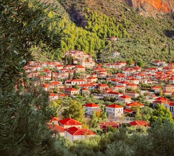 Traditional old village with walnut and chestnut trees 1150mt above sea. Plenty of store selling local desserts, herbs and honey and greek restaurants. 1h drive from Leonidio with beautiful views along the way guaranteed.